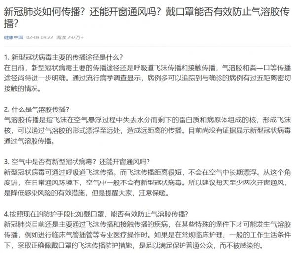 2月8日举行的上海市疫情防控工作领导小组新闻发布会,提到了一个新冠病毒传播的新名词:气溶胶传播。 直接传播和接触传播我们都听过,那么气溶胶传播又是什么?是不是随空气传播?还能不能开窗通风? 卫健委官方微博发布解释: 什么是气溶胶? 简单地说,气溶胶是一些在空