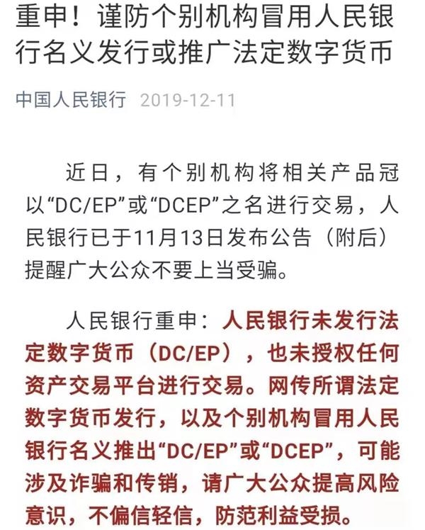 原标题:央行一个月两度“打假”!不要轻信数字货币“冒牌货”这些可能涉及诈骗和传销 摘要 【央行一个月两度“打假”!不要轻信数字货币“冒牌货”这些可能涉及诈骗和传销】时隔不到1月,央行再次就数字货币“冒牌货”发声。12月11日,央行官微发布消息称,近日,有个别机构将相关产品冠以“DC/”