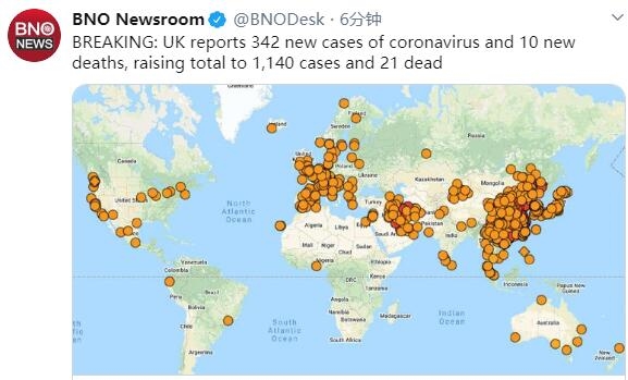 摘要 【英国新增新冠肺炎病例342例累计确诊1140例】据荷兰媒体O刚刚消息,英国新增新冠肺炎病例342例,新增死亡病例10例。至此,该国累计确诊1140例,死亡病例上升至21例。(环球网) 据荷兰媒体O刚刚消息,英国新增新冠肺炎病例342例,新增死亡病例10例。至此,该国累计确诊1140例,死亡病