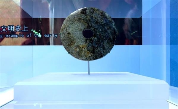 在中国馆内,良渚文化展项是重要内容之一。良渚文化展项位于进博会中国馆美丽中国区域。整个展区布局呈“L”型,以“展台+玻璃罩”的形式,展示了琮、璧、钺仿制玉器。