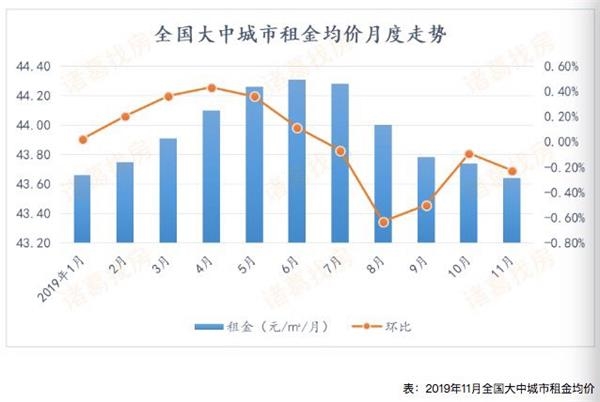 诸葛找房数据研究中心近期公布的《2019年11月全国大中城市租金均价报告》显示,深圳租金均价95.28元/平方米/月,居全国租金均价榜首,环比下降1.58%,深圳租金价格下半年持续下跌。