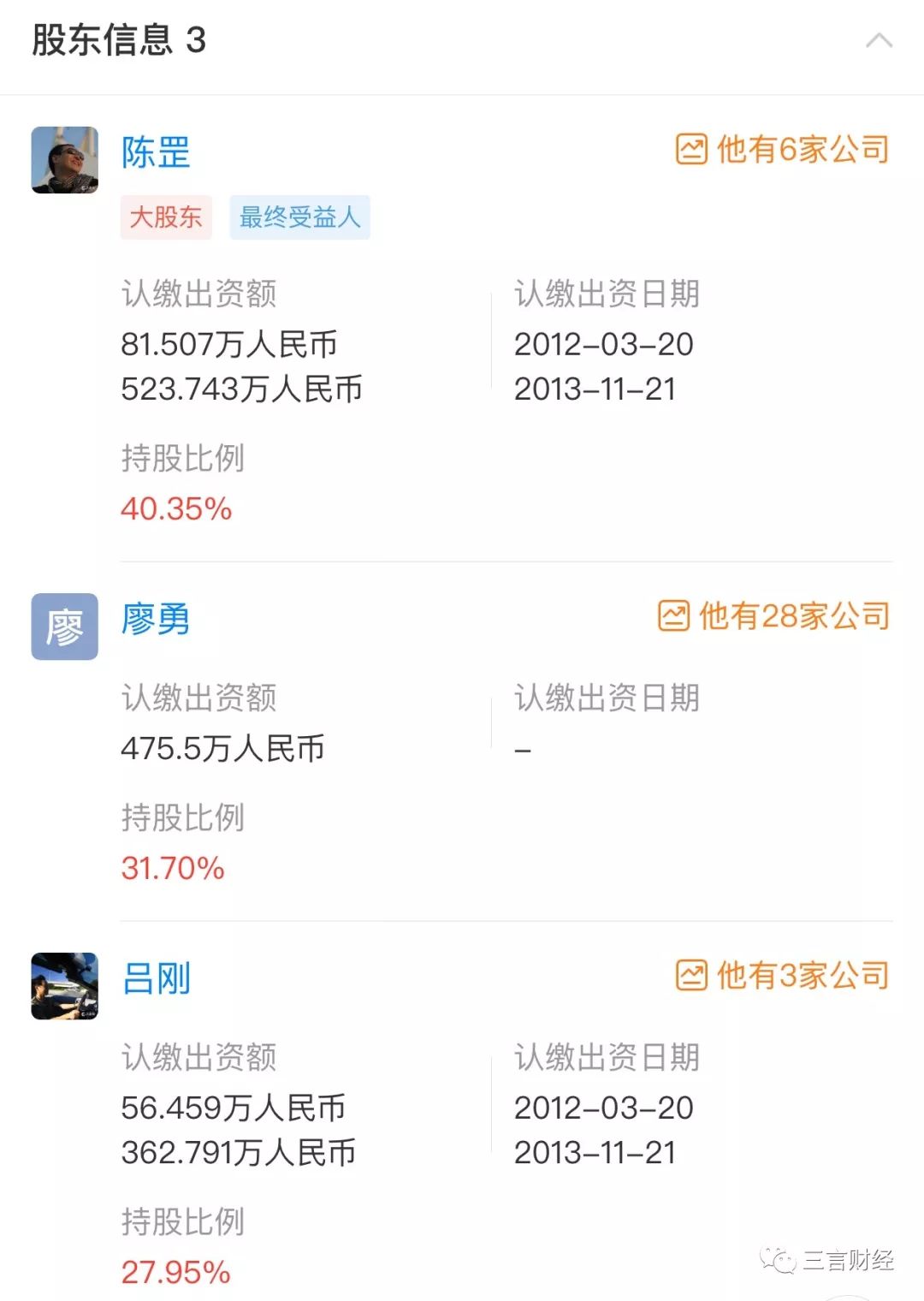 北京蚂蜂窝网络科技有限公司共有3位股东,其中公司联合创始人、CEO陈罡为第一大股东,持股比例为40.35%;廖勇和吕刚分别为第二和第三大股东,持股比例分别为31.7%和27.95%。公司疑似实际控制人为陈罡。