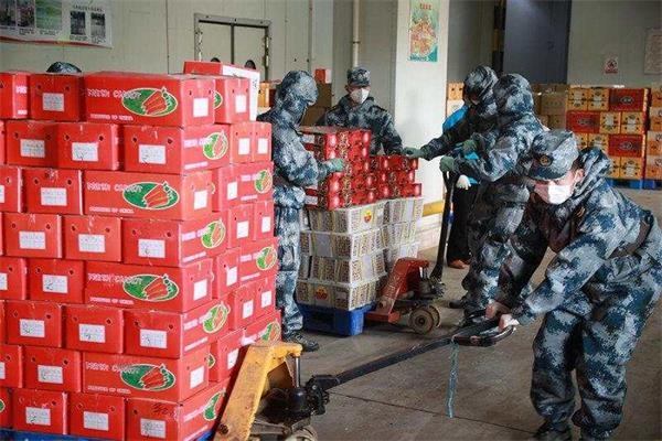 中百超市武汉花山店值班经理熊壮:我们门面相当于是这一片的主要供应点,蔬菜、水果,包括粮食,全部是我们在保障供应的。明显缓解了压力,感谢子弟兵的支持,看到人民子弟兵来到这里我们心里有底了,感到非常安心。
