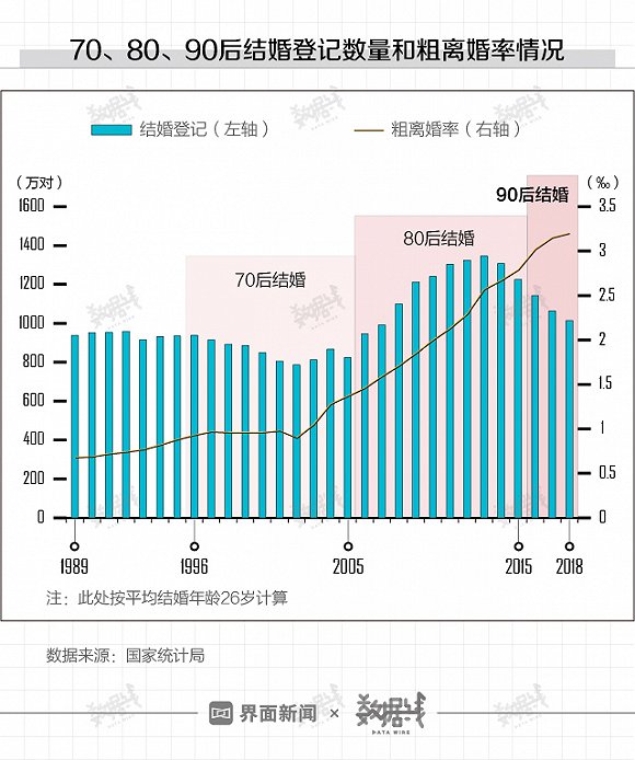 2016年,大批90后开始步入婚姻殿堂,而此时中国粗离婚率已经突破3‰,并且这一数字还在不断上升。