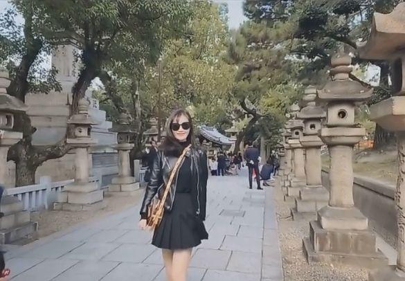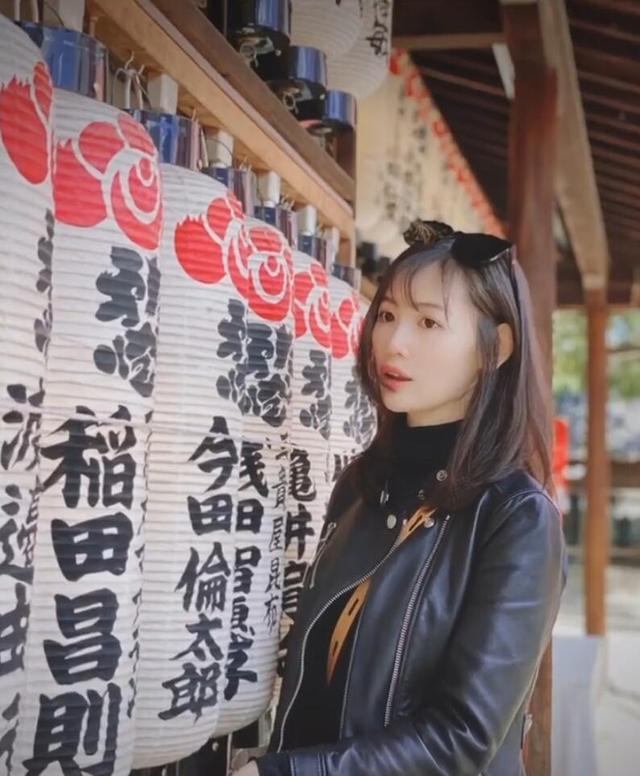 马蓉游日本晒男友视角,穿百褶裙回头一笑美如画,对镜自信颜值高