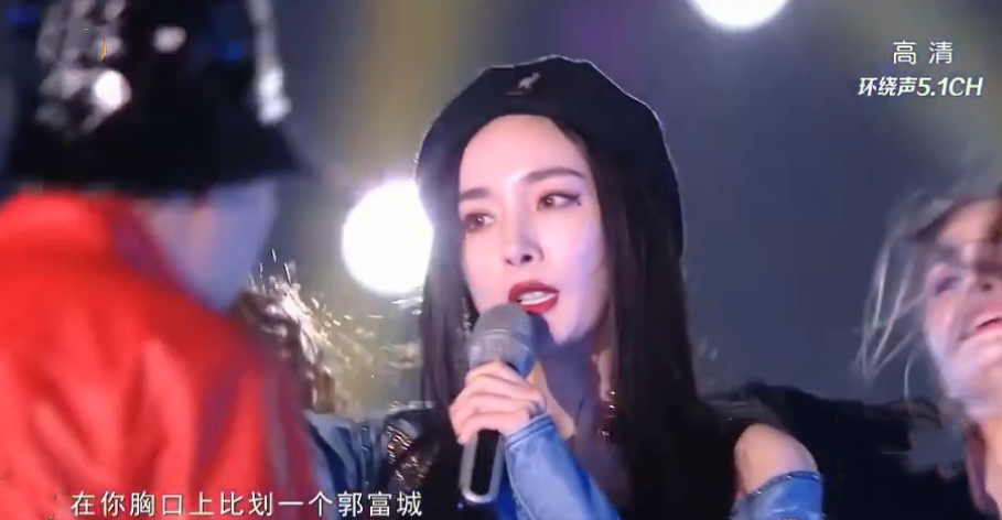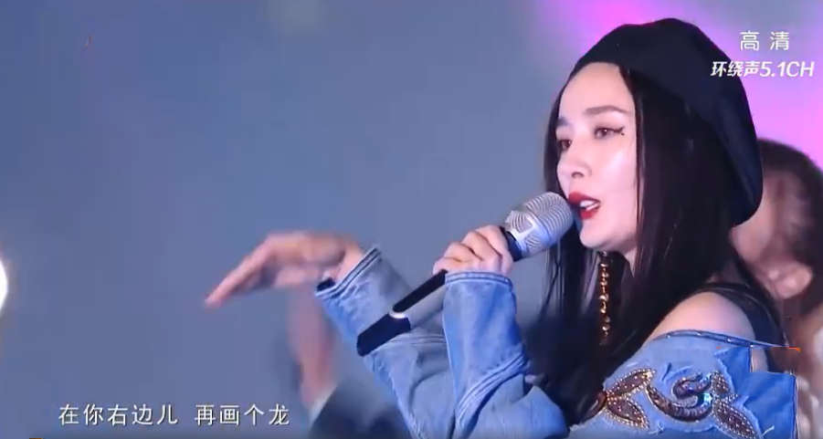 杨幂今晚带来Rap首秀,与腾格尔搭档表演《野狼Disco》,牛仔外套贝雷帽的搭配酷帅十足,眼角的泪痣更有一种魅惑感觉。不过这身造型被不少网友吐槽风格有点似曾相识,像极了李小璐的风格,至于歌声还是十分有杨幂的风格。
